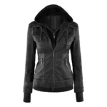 Elevate your outerwear collection with the Women’s Black Removable Hood Motorcycle Leather Coat Jacket with Flap Pockets. Designed for versatility, this jacket combines the edgy appeal of a biker style with the practicality of a detachable hood. The premium Real leather finish offers a sleek and modern look, while the flap pockets add both function and detail. Perfect for casual outings or a night ride, this jacket ensures comfort, durability, and timeless style in every season.